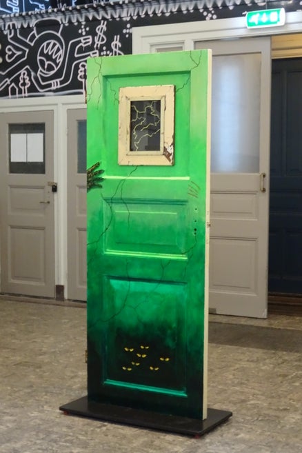 het object "Weerskant, PF'18" 197x76x5, deur,raampje,hang&sluitwerk, acryl, bootlak